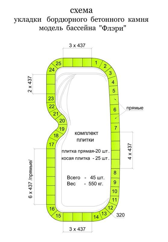 «Флери» – это бассейн, сочетающий в себе просторную плавательную зону, уютные зоны для отдыха и уникальные условия интеграции в ландшафт. Четкие геометрические формы с мягкими скруглениями создают элегантный современный силуэт. А специальная выемка вдоль борта – возможность для декоративных посадок (карликовый можжевельник, самшит, лаванда) или каскадного водопада.