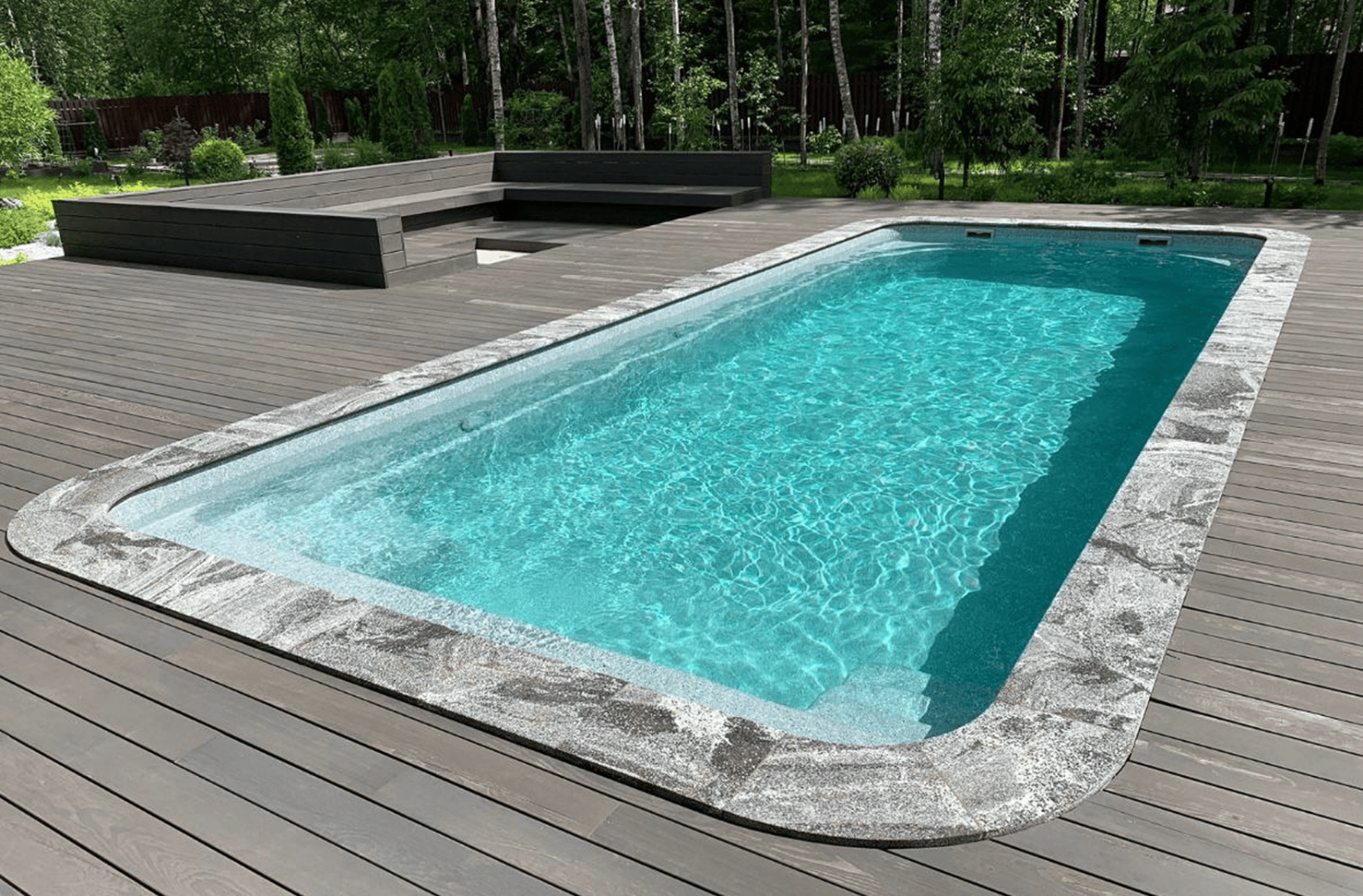 Таинственный цвет покрытия с оттенками магнетического песка. При ярком дневном освещении, вода в бассейне с покрытием Эклипс выглядит невероятно свежей и прохладной.